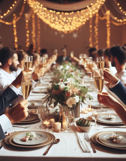 £1,480.00Elevate your wedding celebration with personalised labels and make it an unforgettable moment. Ideal for weddings, our Personalised Toasting Package includes 30 bottles of Réserve Brut sparkling wine. The package is suitable for a wedding of up to 50 guests, and serves three to four glasses per guest. Perfect during the drinks reception, or to accompany speeches at the wedding.