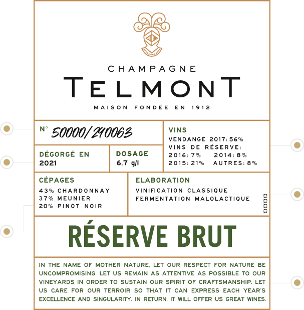 Each bottle is numbered to ensure the tracking of its provenance. The exact number of bottles in circulation for each cuvée is indicated. Telmont chooses the quality of its wine over the quantity of its production.