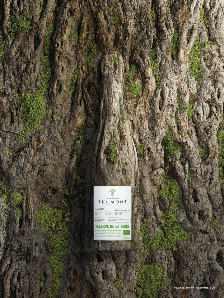 Telmont launches its first certified organic cuvée: Réserve de la Terre, the result of a decade of passion and determination. Telmont is setting new standards for its production: no more transparent bottles, no more packaging and innovative labels.
